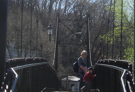 The tracks cross this bridge, which somehow manages to be scenic in such a beautiful context, and head to what was the Federal Match Corporation to the south of the park. I don't think they're in use anymore, though. The children on the bridge give me that suspicion.