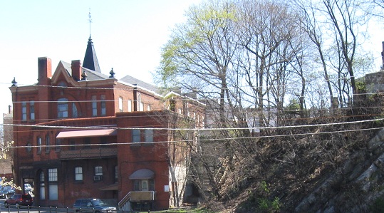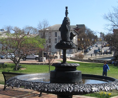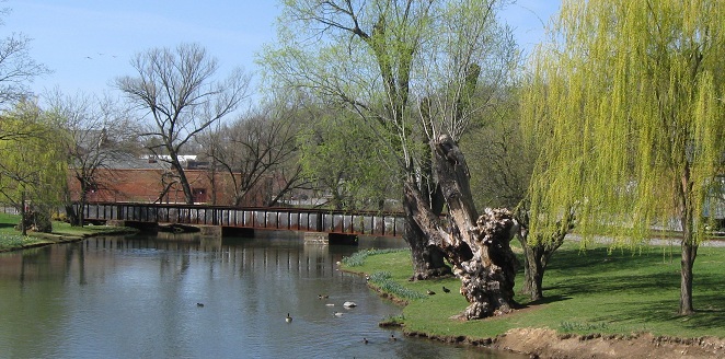 Looking east toward downtown, where the large brick church dominates the view. Let's take a look at the park instead.