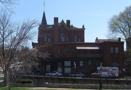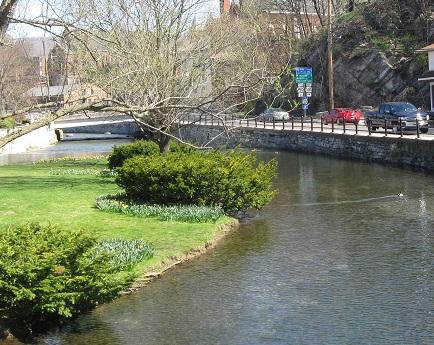 Looking west from Water Street on the opposite (east) bank of Spring Creek.