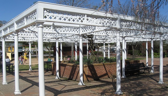 Here's the train station, still host to a Historical Railroad. It even has a train-shaped playground!