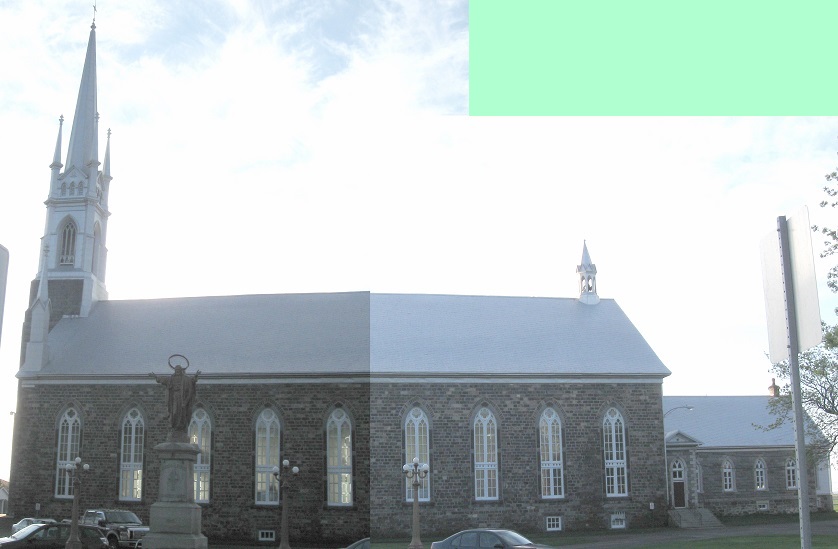 Ste-Cécile-du-Bic is the church of Le Bic, a former town merged into Rimouski in 2009. It's south of Route 132 and across the railroad. The old road through town can no longer be completely followed because the railroad crossing was closed. The photos after the church head west along the St. Lawrence River.