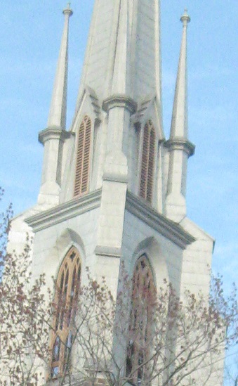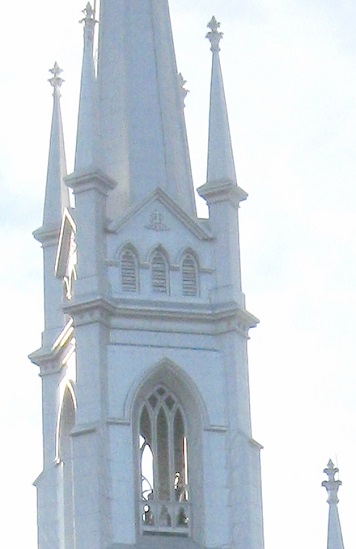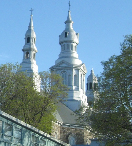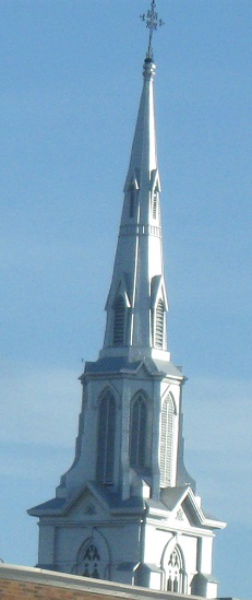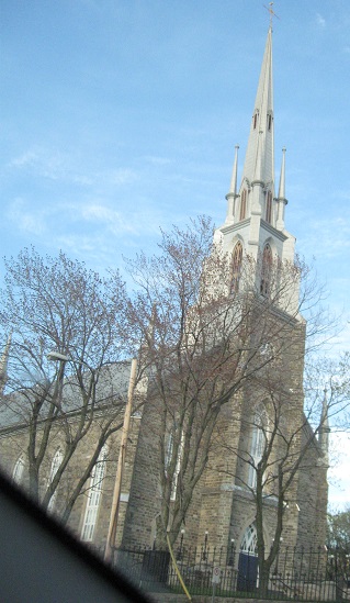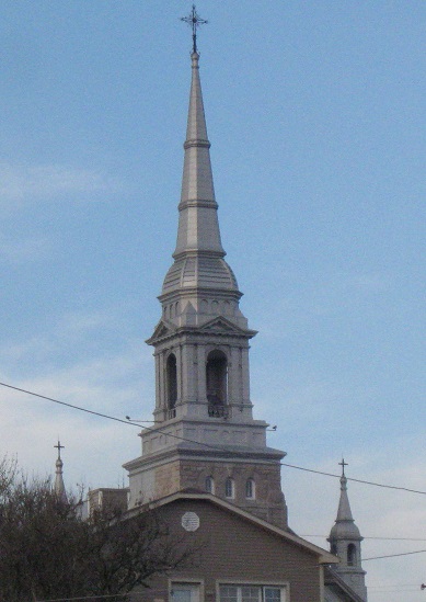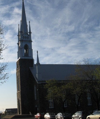 Heading west in Rimouski, this church is St-Germain. For once, the church matches the name of the street it's on instead of the city it's in, although Rimouski is large enough to have several churches.
