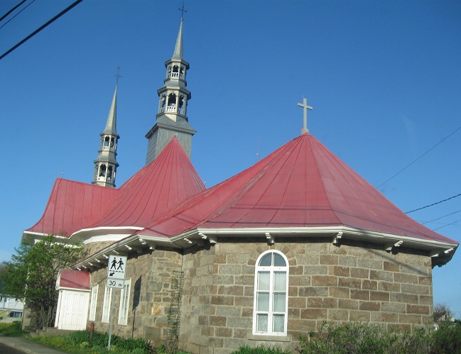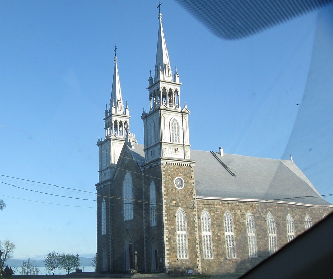 Heading west out of Ste-Flavie, is that a lighthouse in the distance? There's one at Pointe-au-Père another 10 km west of here, but this is actually the steeple of the Ste-Luce church. Seriously, churches everywhere.