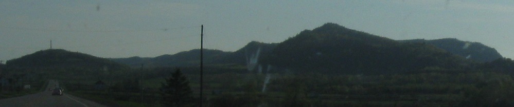 Looking east at the churches of St-Simon and St-Fabien, both to the southeast of Route 132. The highway used to go through St-Fabien, but St-Simon has always been off the route.