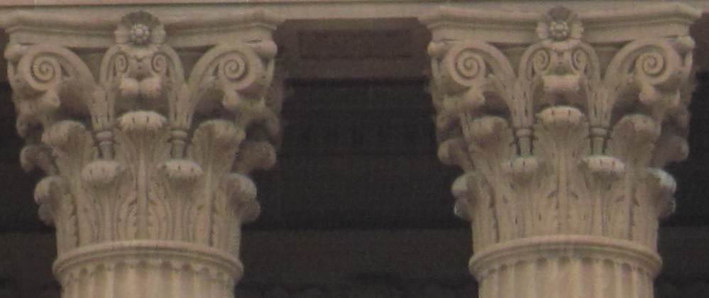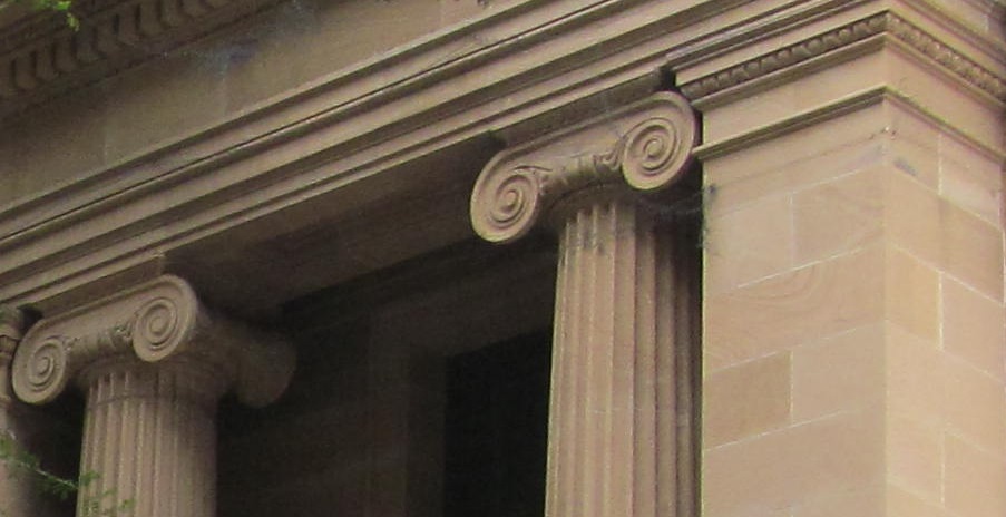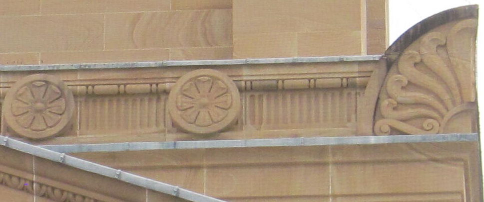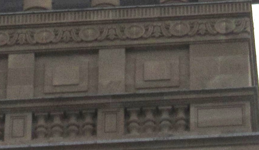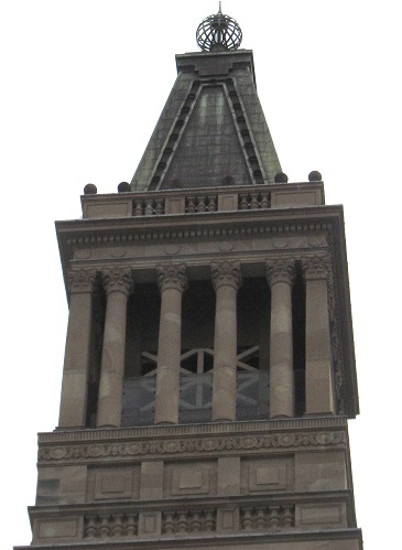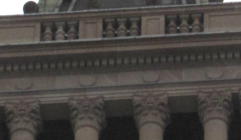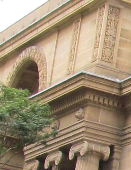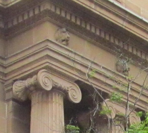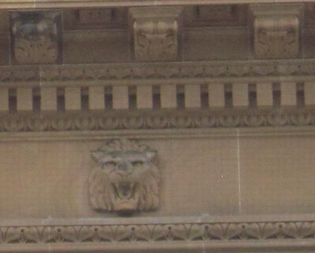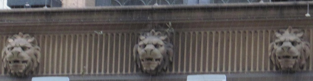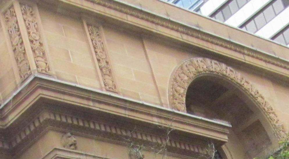 Walking north up Ann Street. The lions (and the adornments above them) grace the western entrance to City Hall.