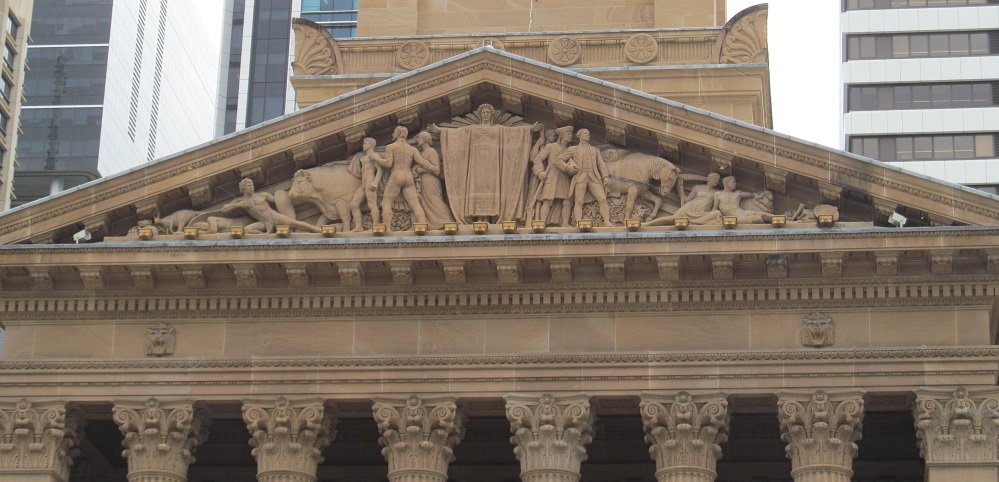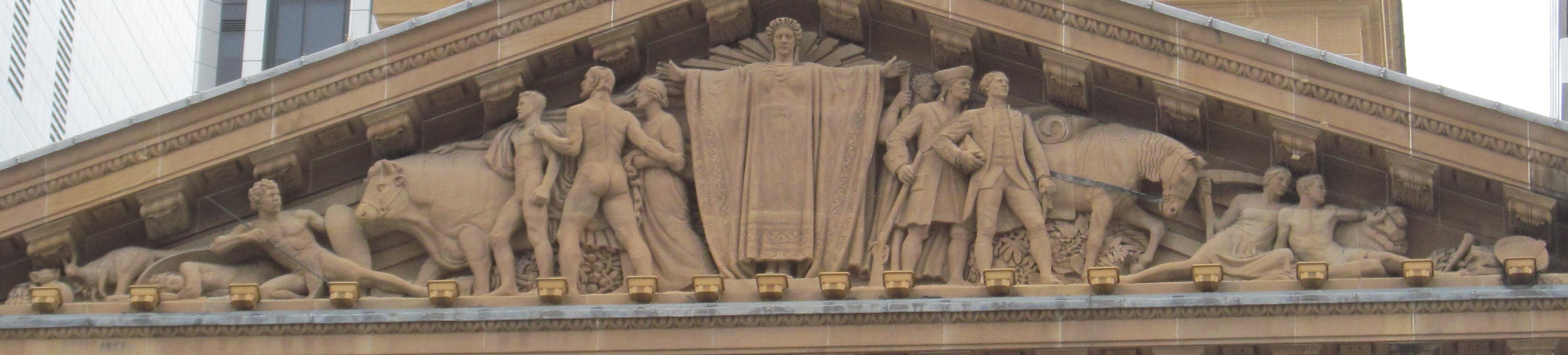 The coolest side of City Hall is the front, of course. If you'd like to see a kangaroo, a bull, and *gasp* some nudity, click on the last photo for a closeup. It's the 1930 tympanum created by sculptress Daphne Mayo, depicting white settlers pushing away native animals and people from the central figure of "enlightenment." The cringeworthy name is "The Progress of Civilisation in the State of Queensland." I think we've learned since then.