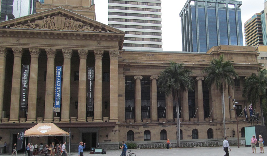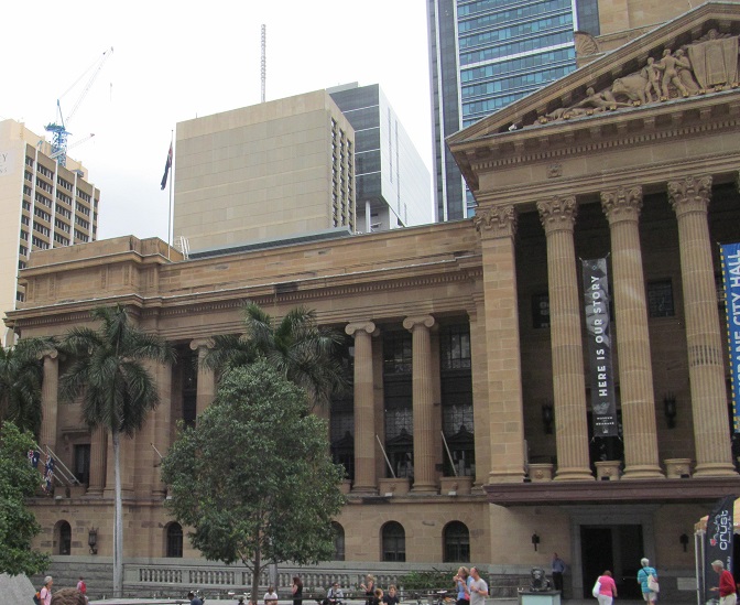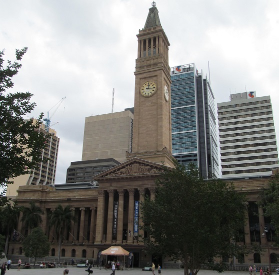 City Hall was constructed from 1920-1930, and it's so cool that it was occupied starting in 1927. It was re-restored shortly before I visited in 2013 to restore some of the aging materials and building subsidence. The clock tower is 64 metres tall and was based on St. Mark's Campanile in Venice. Upon its construction, the building was the tallest in Brisbane and the clocks on the tower were the largest in Australia. Now that I've told you all about the building, you can just enjoy my walk around it from the west side (Ann Street) to the east side (Adelaide Street via King George Square).