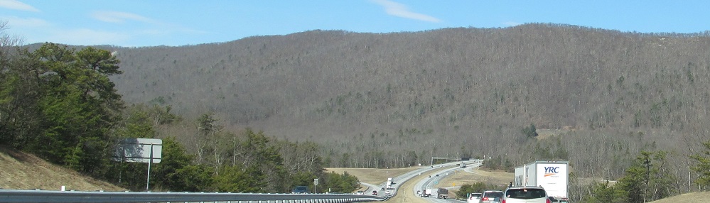 Just like before, there is no gap in East River Mountain, so another tunnel (and West Virginia thereafter) awaits. Photos pan from north to west. The whole ridge you see here is the same mountain.