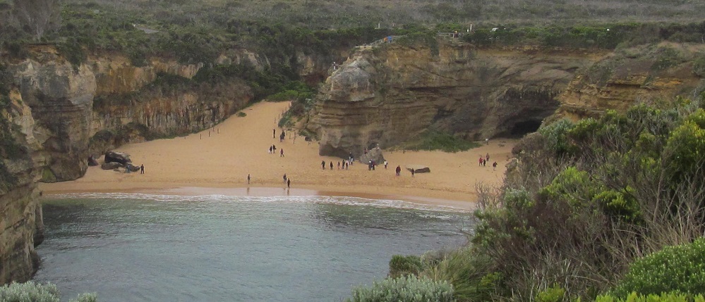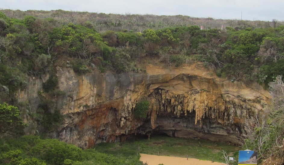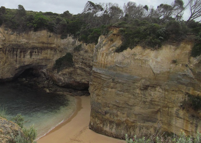 Fruitful find: there is indeed a cave along the north inlet. My choices are walk along the beach or drive to the next lookout point. I didn't bring my beach shoes, so back I go.