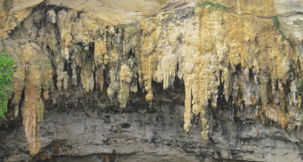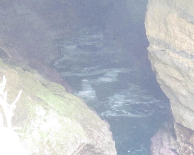 The first photo looks north at where I was just standing. The second looks back at the first tiny cave I saw, revealing that there is a second cave to its right, invisible from the centre lookout.