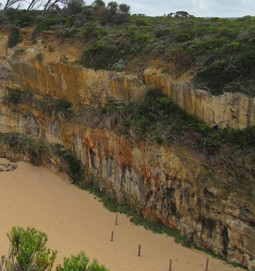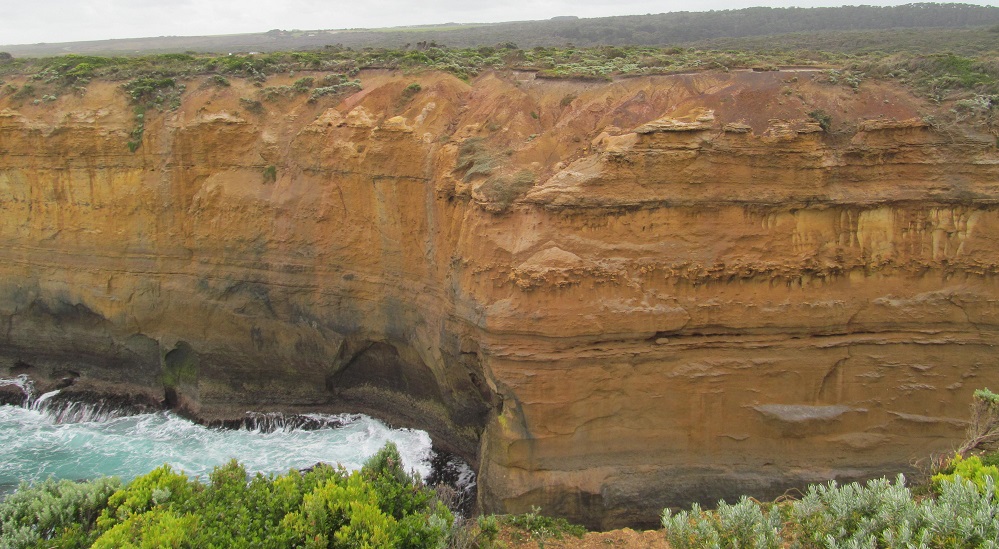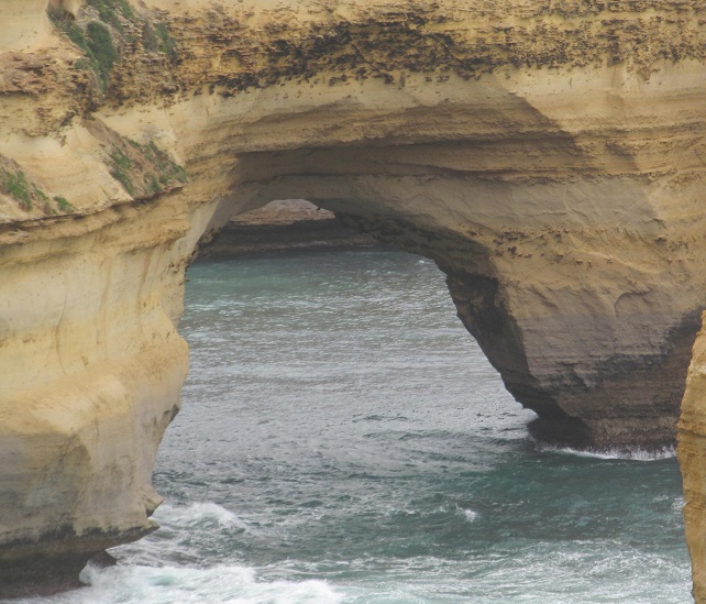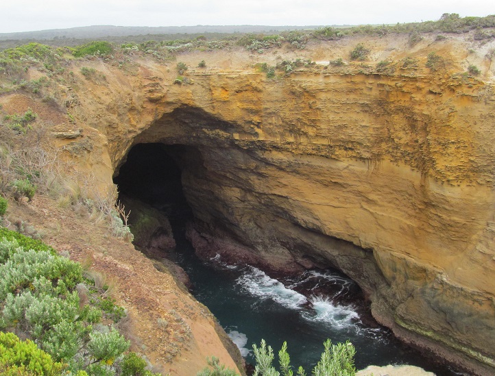 From the tip of Island Arch Lookout, which is the south wall of Loch Ard Gorge, I spy... another cave! And an arch! The gorge that keeps on giving. This is not actually Island Arch - that's to my south and not easily visible from the path. This one's on Mutton Bird Island, which already has its own Mutton Bird Lookout, so I suppose VIC just decided to borrow the nearest other geographical name for this lookout instead.