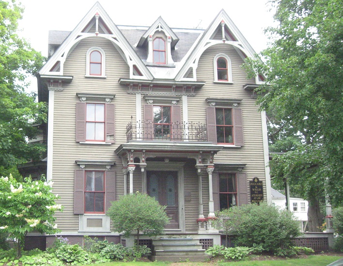 The 1888 Charles H. Stevens House is on the west side of Main Street across from "Idlewood" (#1496 Main), whose provenance I have been unable to glean.