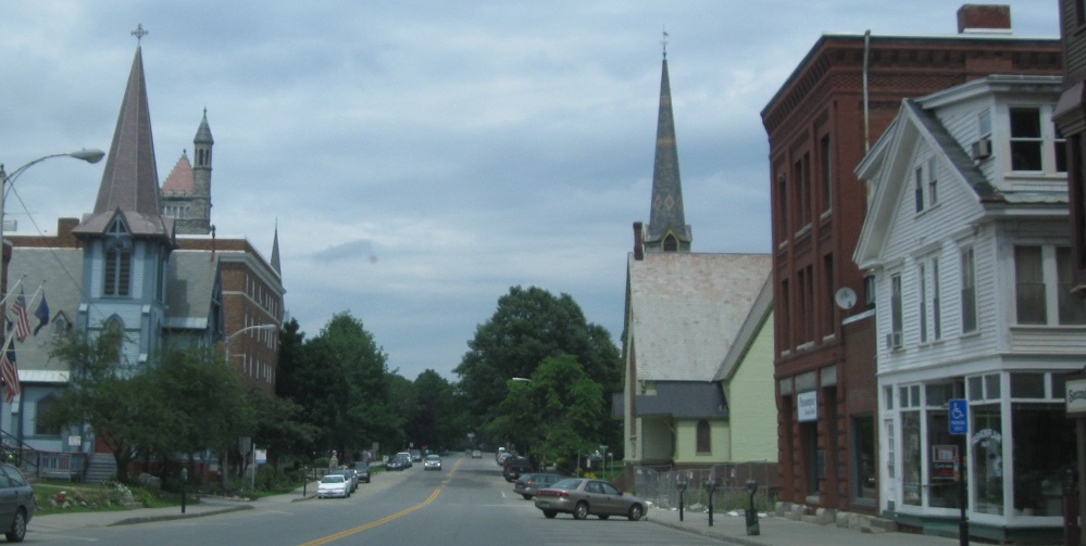 The north side of St. Johnsbury is clearly God's country. These are just two of many churches, St. Andrew's Episcopal and the Caledonia Christian School.