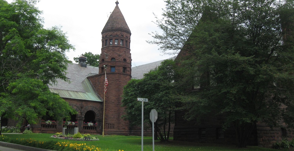 Look east past the Caledonia School and you'll see this ornate building at the end of Prospect Street.