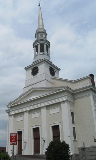 Hey, remember I told you to note a building? Got distracted by all those other buildings? This is the North Congregational Church, which was actually the original Congregational Church. They kept constructing and repurposing buildings, so this one was built in 1878 after the 2nd Congregational Church building was moved off site and decommissioned as the "Music Hall." To prove this is the older congregation, it's located at Church Street.