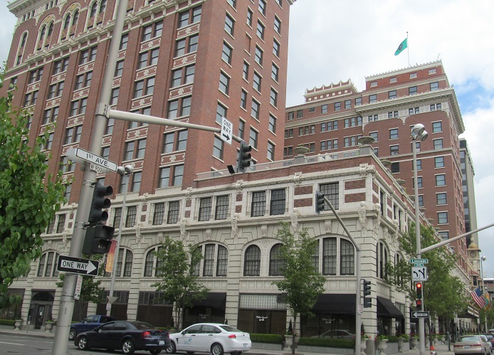 This is what I skipped: The Davenport. This Mission-style hotel opened in 1914 and is grand in both scale and accoutrements. These views head west along Sprague Avenue between Post and Lincoln Streets.