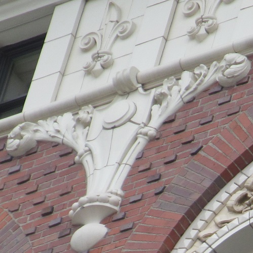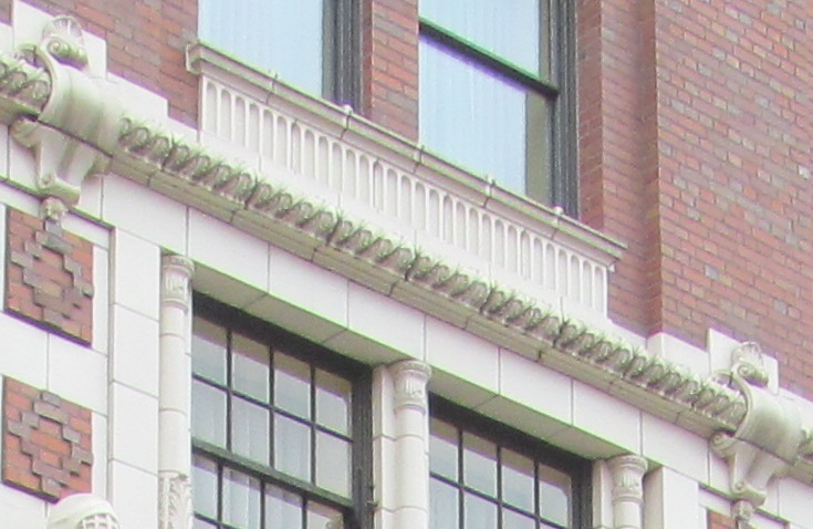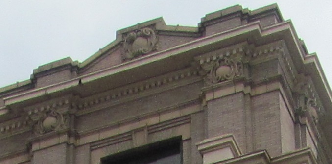Here are a bevy of architectural details from the walls of the building that may not have jumped out in my wide-scale photos, from top to bottom.