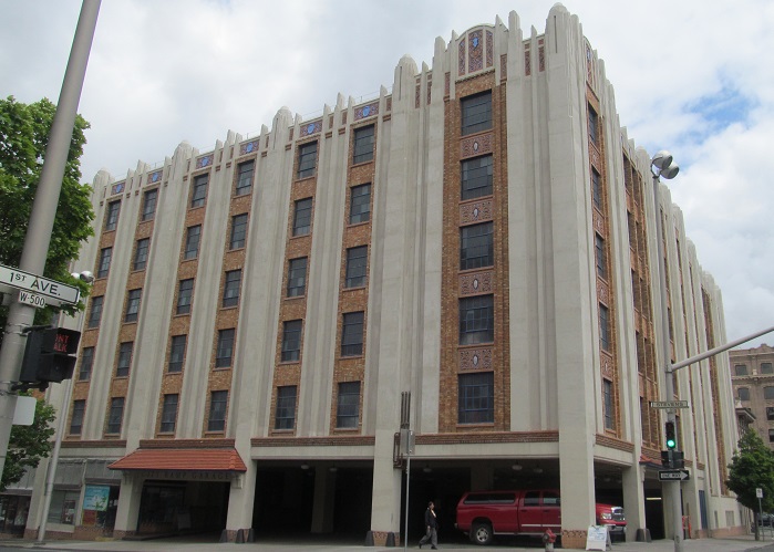 The City Ramp Garage just might be the second-coolest building. Opened in 1928 by a coalition of business owners who decided they needed it, it was the first modern-style multilevel parking garage in the city, and really one of the first at all. Instead of being dull concrete all over, it looks like a regular office building and gets all the architectural treatments Art Deco has to offer. Also the first Art Deco building in Spokane, it's at the northeast corner of 1st Avenue and Stevens Street.