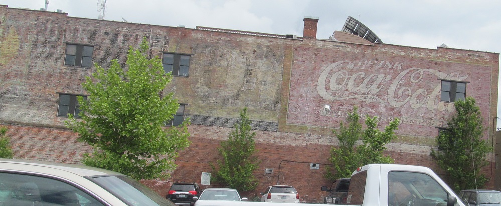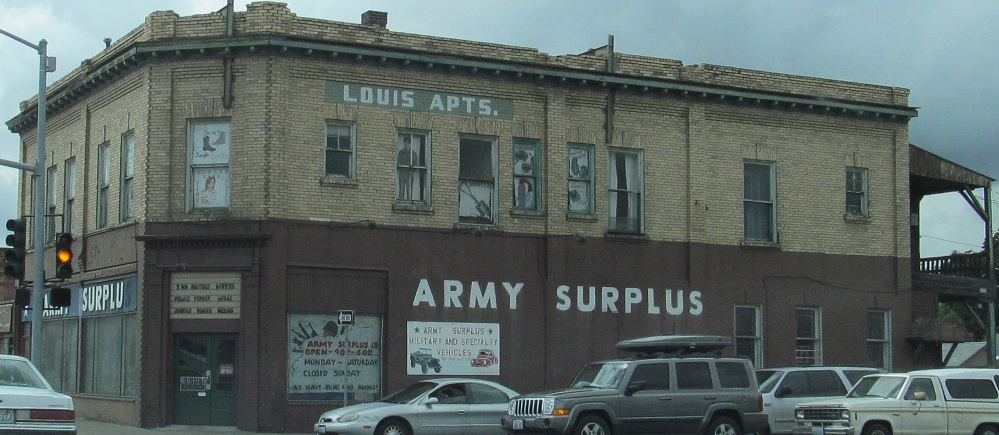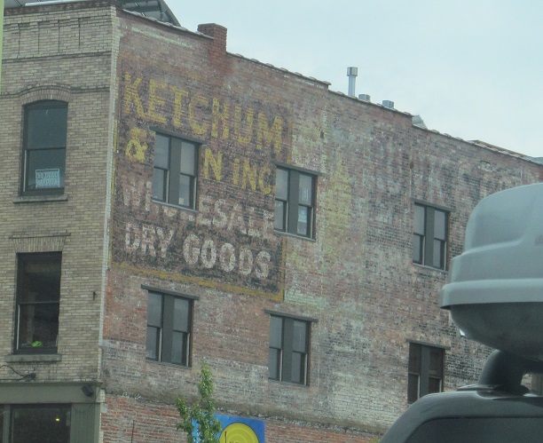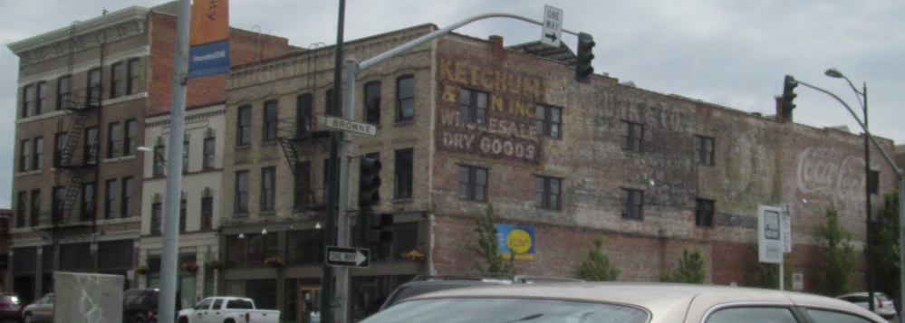 Plenty of ads adorn this building on the south corner of Browne Street and Main Avenue.