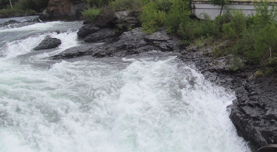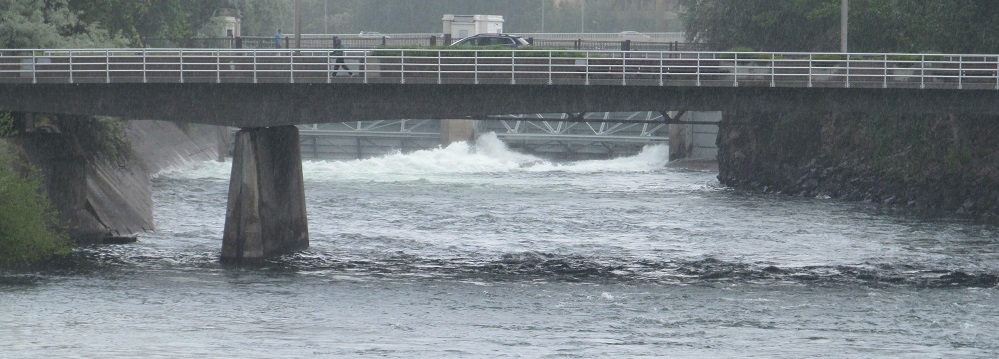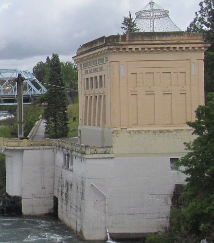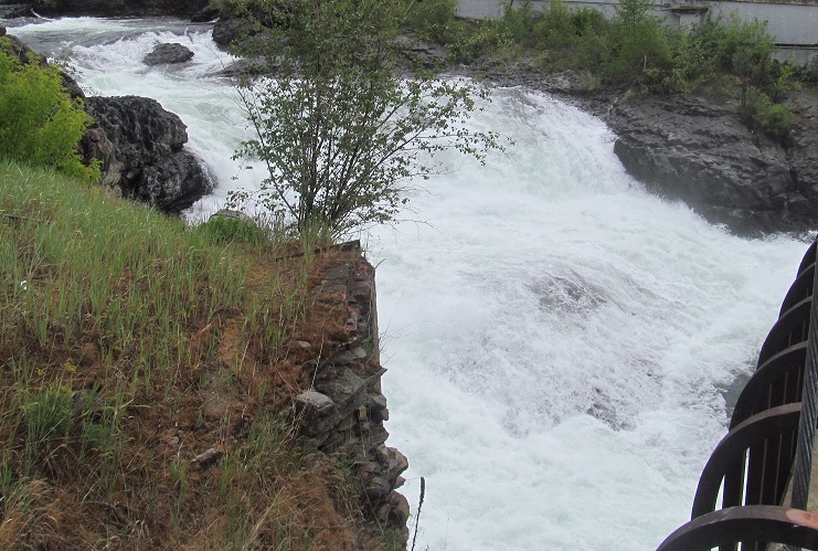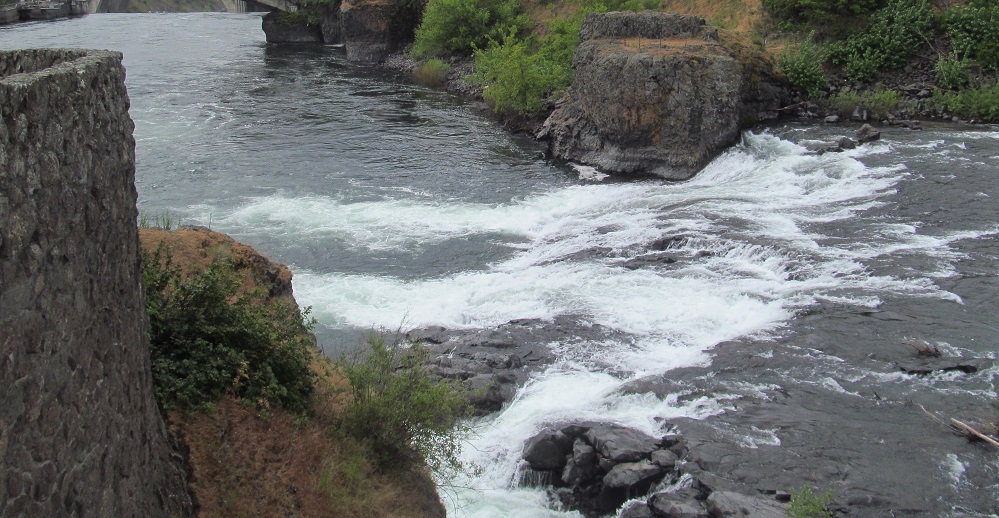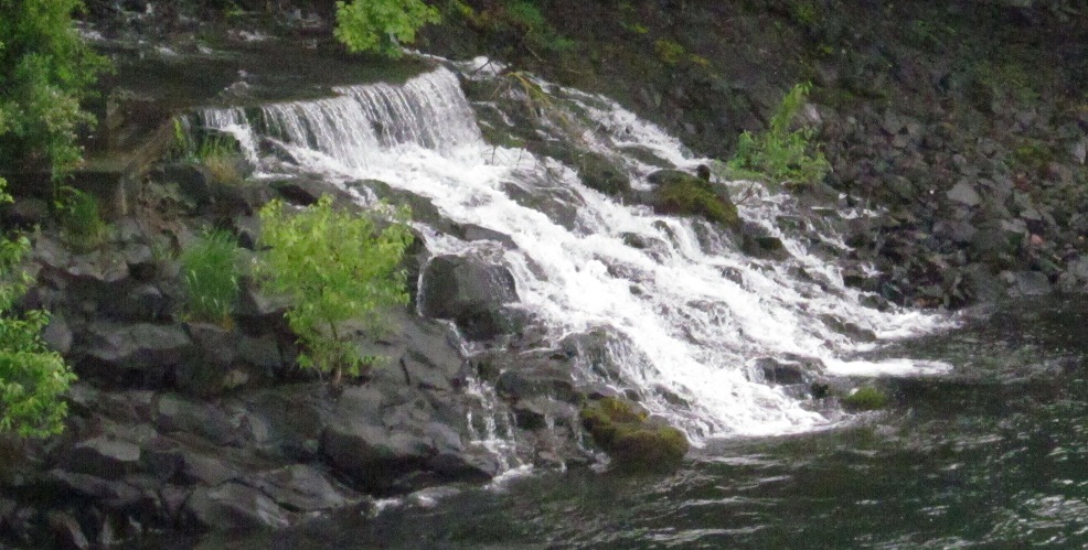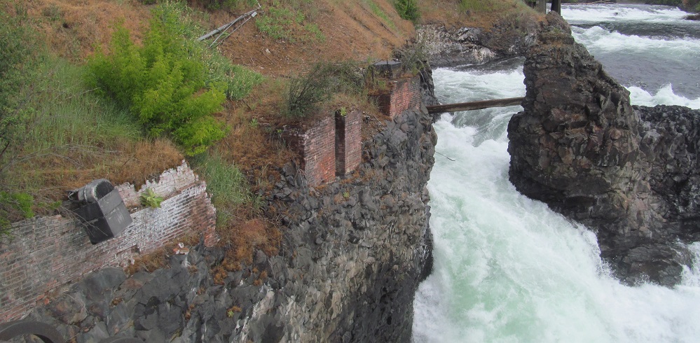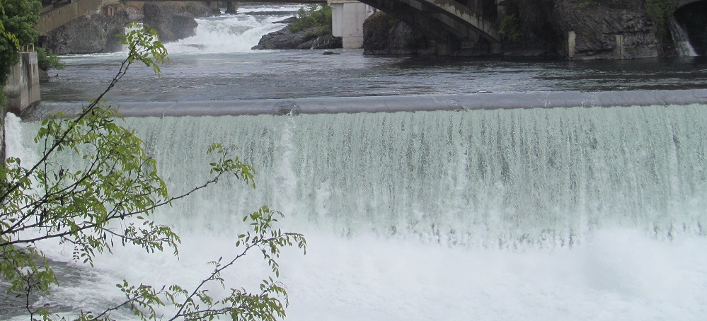 This little waterfall drains the Spokane River south channel's diversion channel west of the power plant.