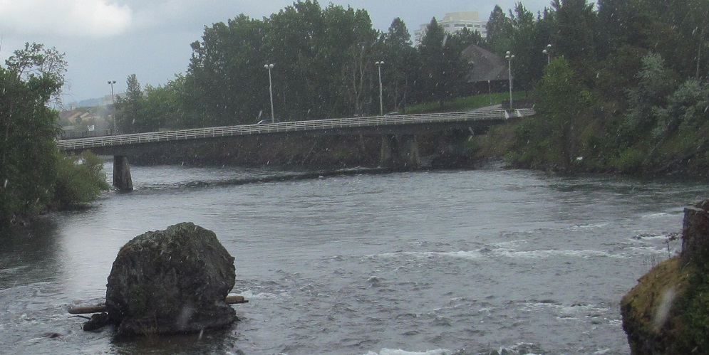 I return you to your regularly scheduled river. These are the entirety of Lower Falls and Canada Island, seen from the Post Street Bridge.