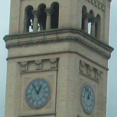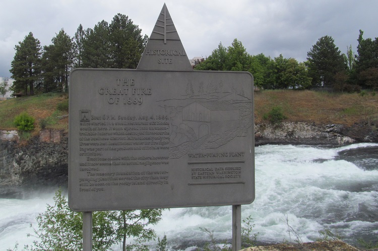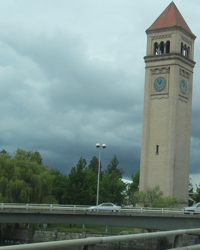 This is the Great Northern Clock Tower, all that remains of the GN rail depot that was constructed in 1902. This guy has been preserved and maintained, but not upgraded - the clock must still be manually wound every week. It's just northwest of Washington Avenue's Spokane River crossing.