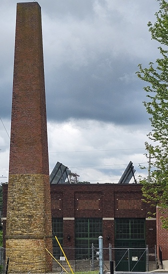 The Smokestack rises at the west corner of the Winter Street bridge over the Kinnickinnic River. It dates to 1879, the last original part of the 1867 Junction Mill (still a power plant though).