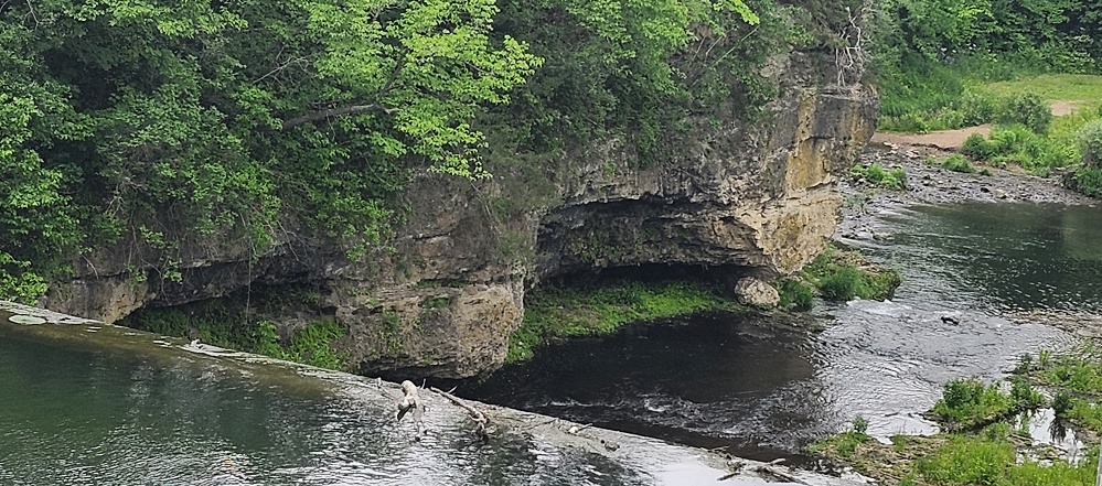 Looking southwest from there along the river as it flows over the dam (again, not original).