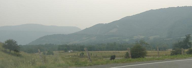Heading south from WV 32 and Blackwater Falls, windmills threaten in the distance. Luckily, the threat passes over the horizon, and in a few miles you rise over a hill and come upon the following reassuring sight: